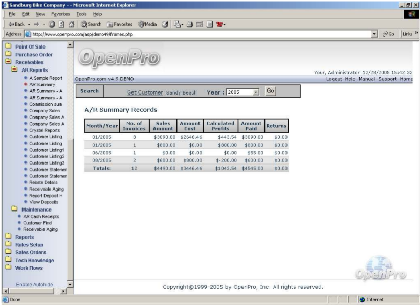 Once you have entered this screen you are able to view all of the information regarding transactions made in that year with that customer.