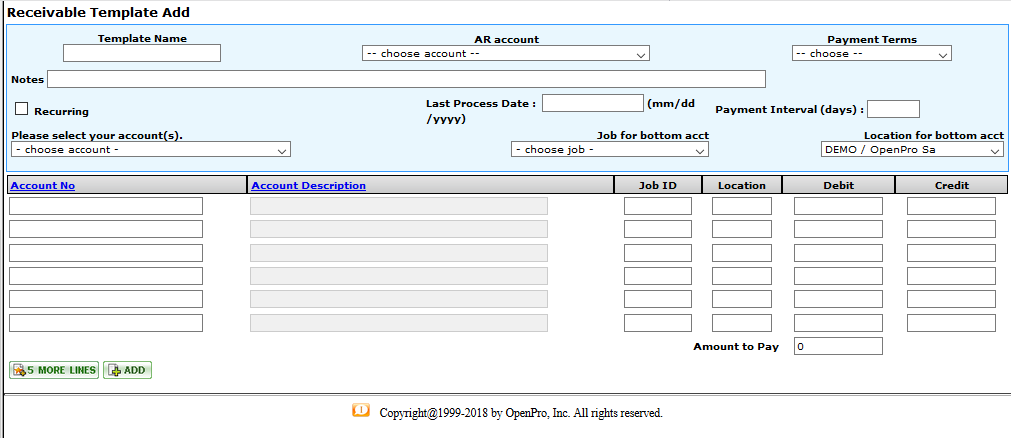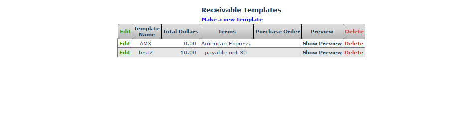 The Receivable Templates Screen allows you to view a listing of all templates, both user and predefined templates. You can edit accordingly.